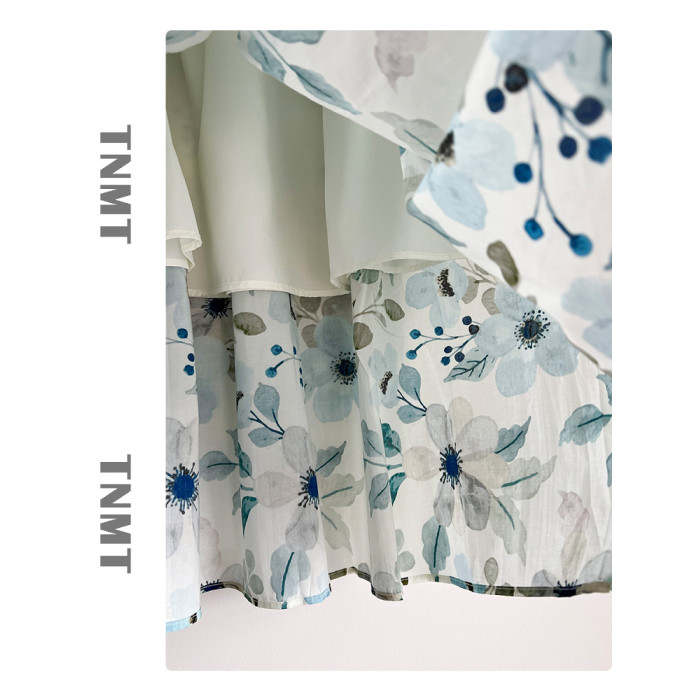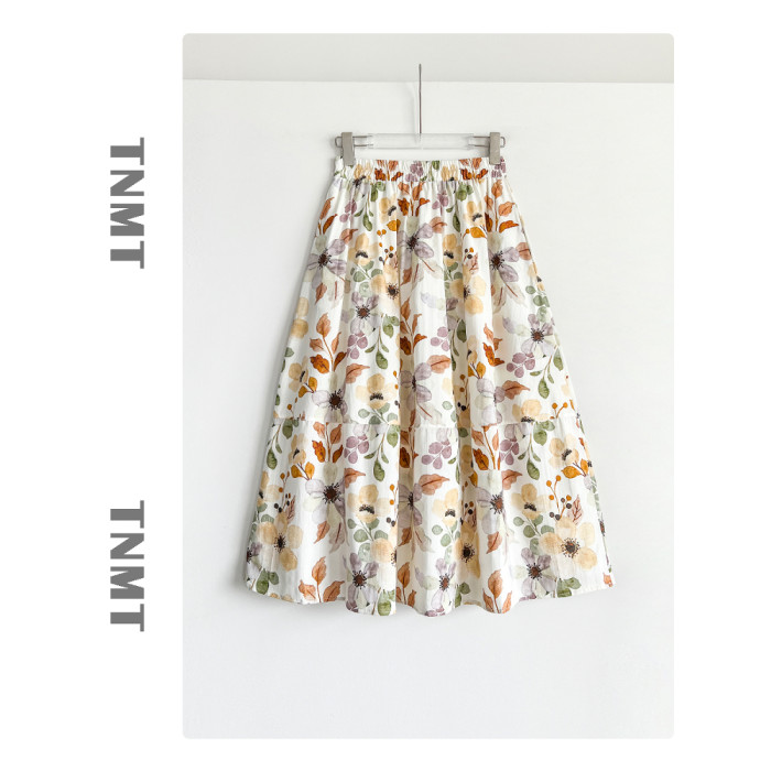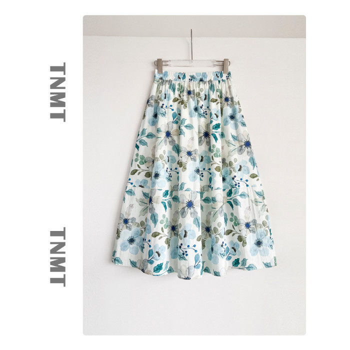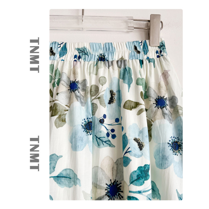 優雅復古水墨印花半身裙女2025新款松緊腰碎花兩截拼接A字繖裙子