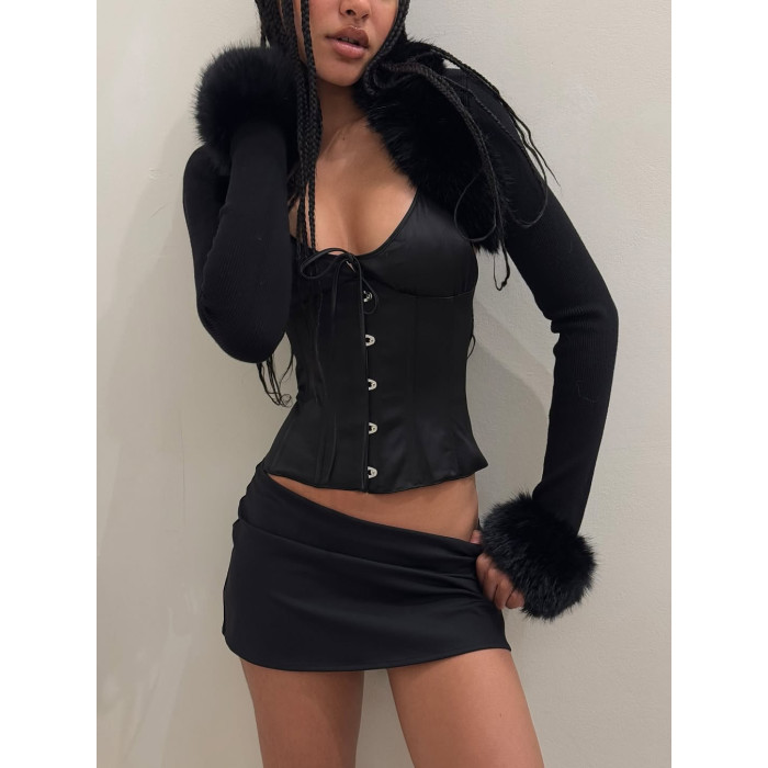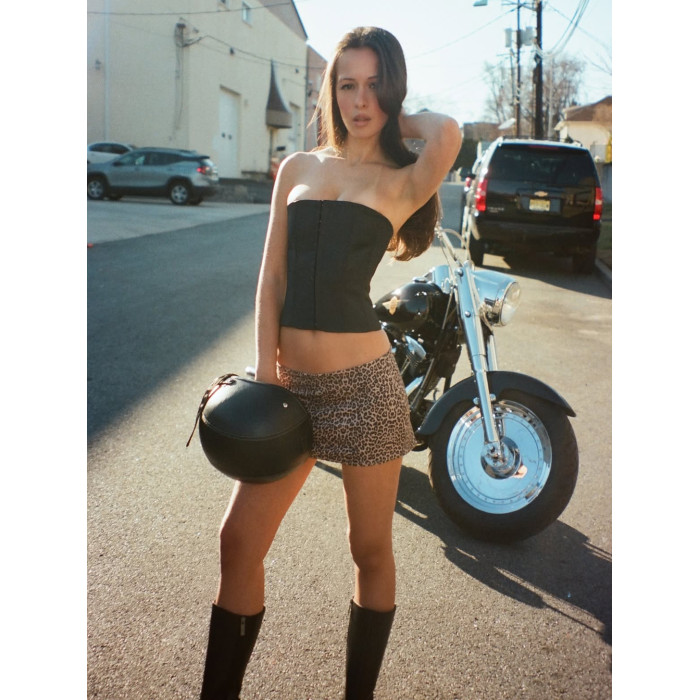 Guizio 低腰彈力包臀裙 黑白純色豹紋印花百搭mini短裙內有安全褲