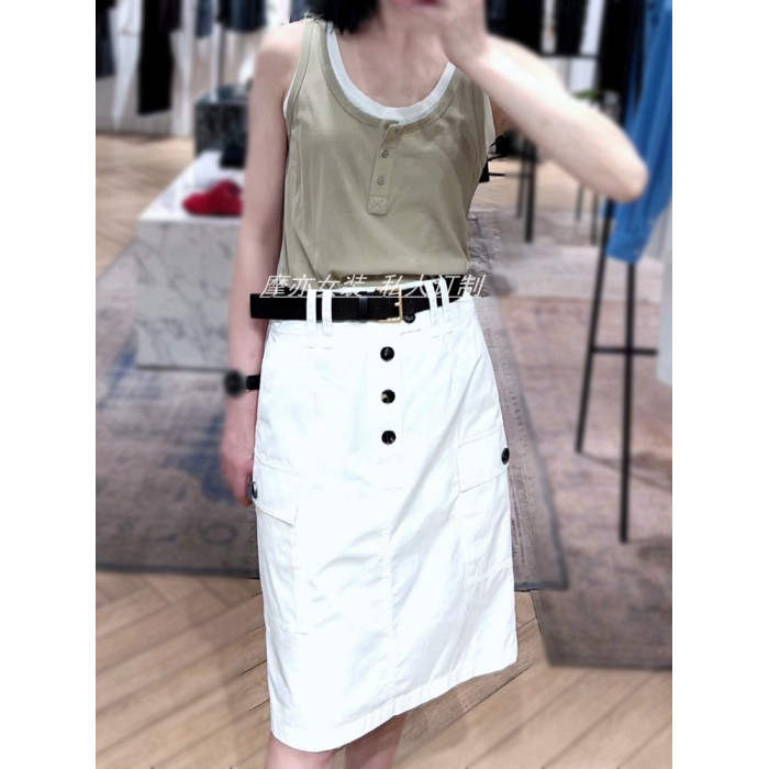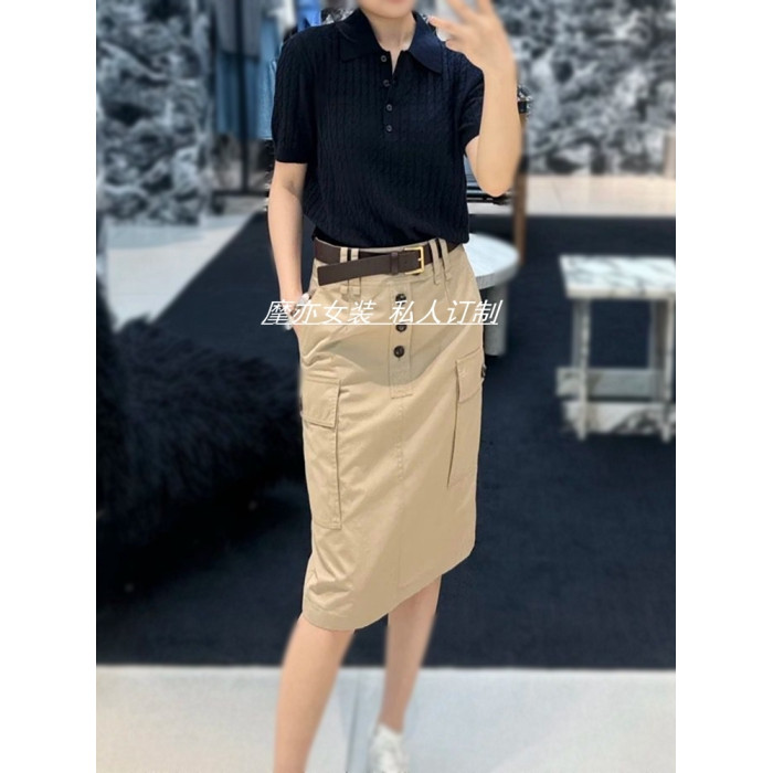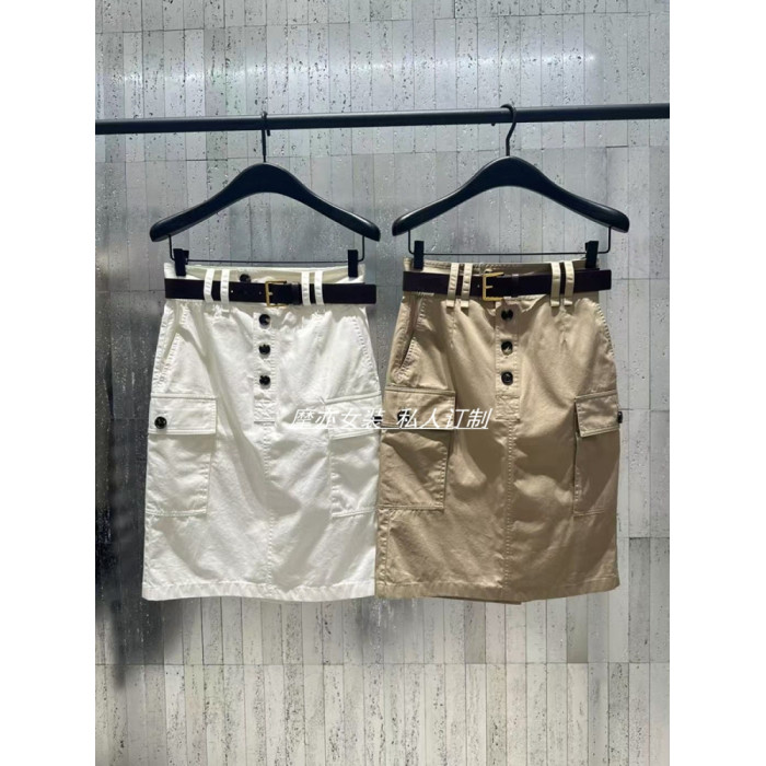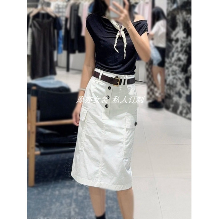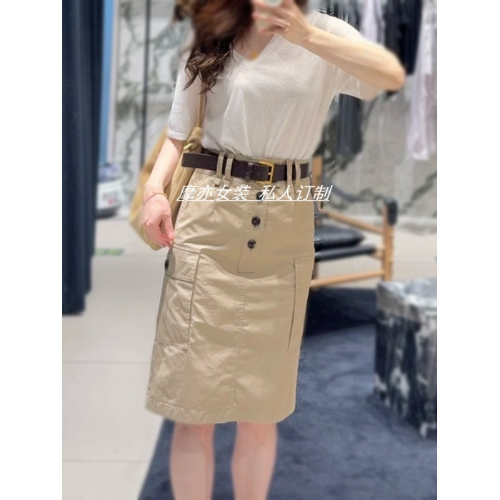 摩亦2025夏季新款休閒寬松百搭高腰顯瘦腰帶工裝口袋半裙中裙