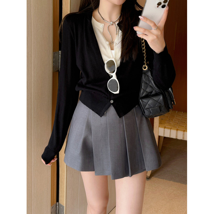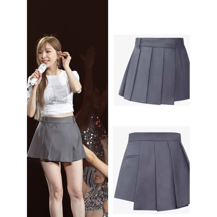 王心淩同款小衆灰色西裝百褶褲裙女高腰顯瘦高級感設計顯瘦短裙女
