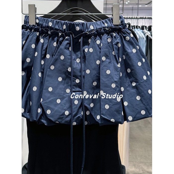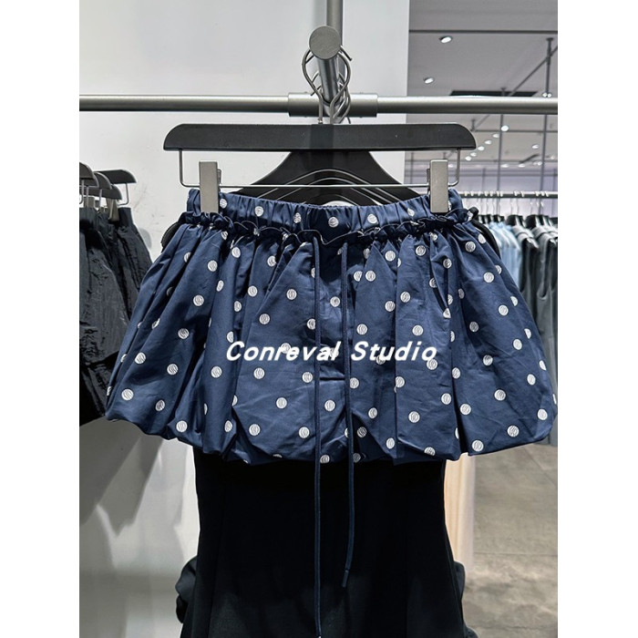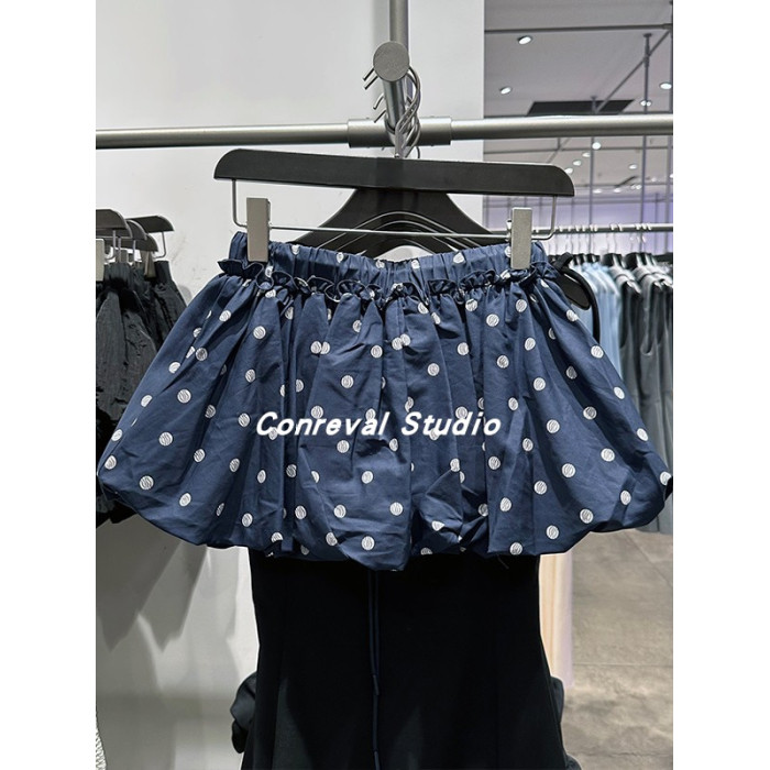 SH&UR短裙2025夏季新款女裝甜美時尚休閒撞色波點短款花苞半裙ins