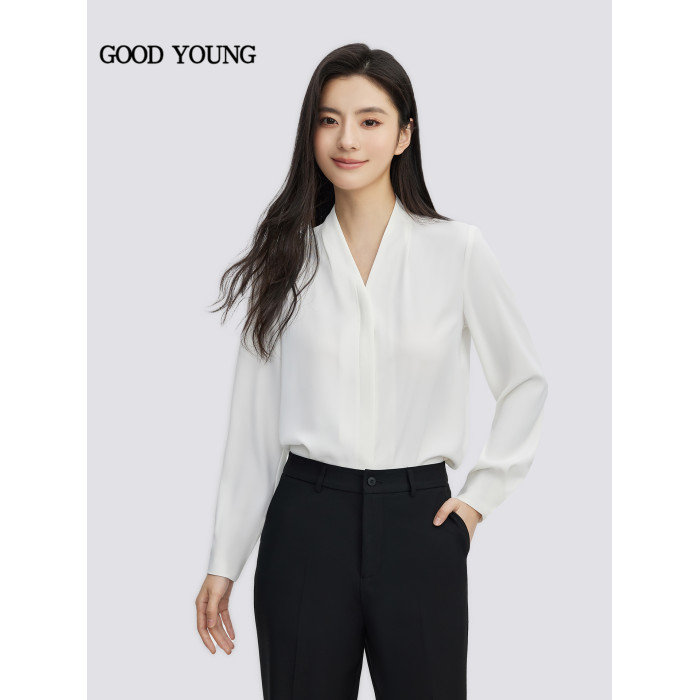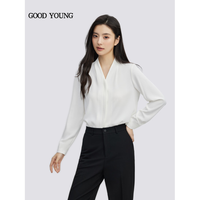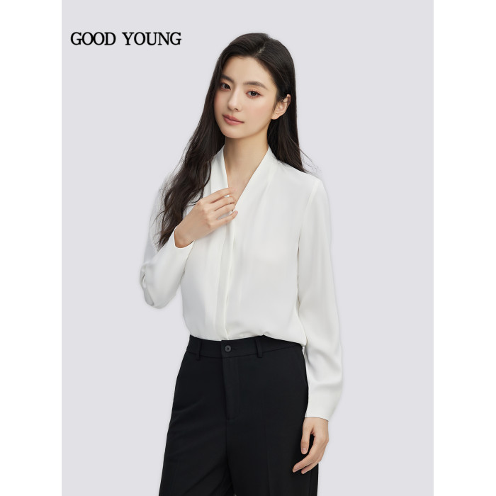 GOODYOUNG白色雪紡開衫V領襯衫抗皺高級感面試襯衣長袖職業通勤女