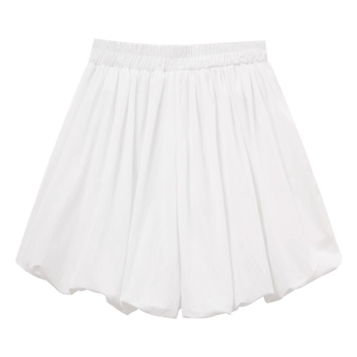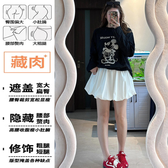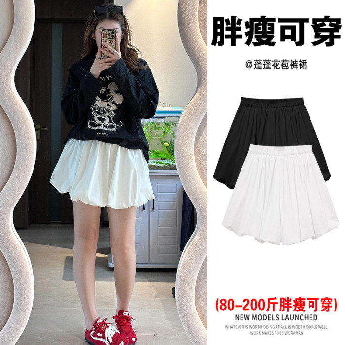 白色花苞短裙女夏季大碼寬松小個子遮胯顯瘦a字濶腿褲泡泡短褲裙