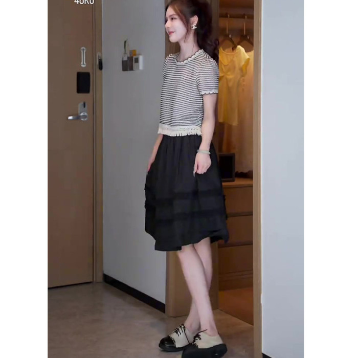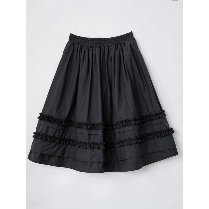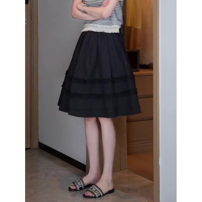 張元一同款女裝夏季法式經典款高腰蓬蓬中長裙花邊設計減齡半身裙