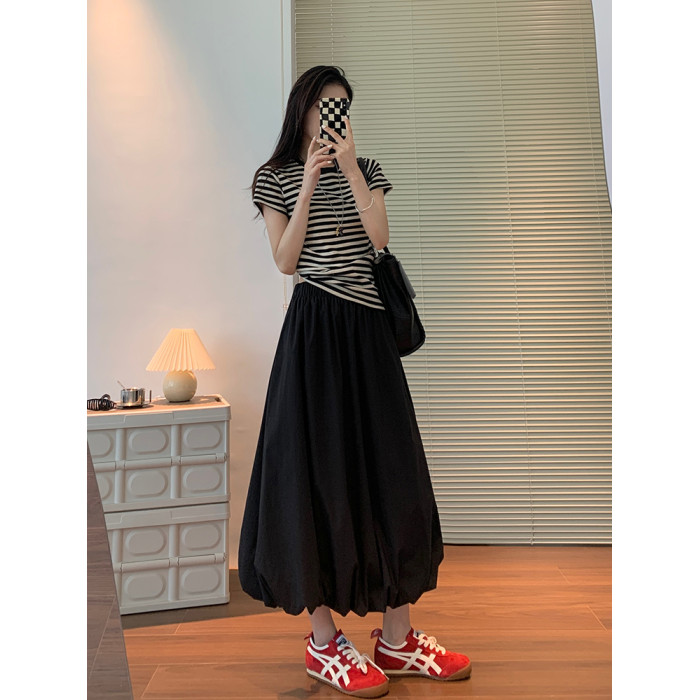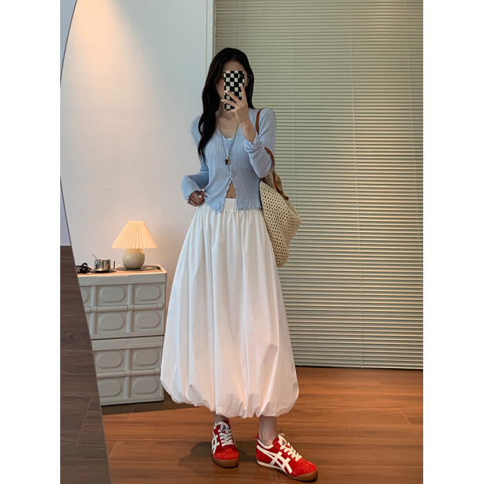 白色花苞裙女2025新款春夏季赫本公主雲朵蓬蓬裙中長款繖裙半身裙