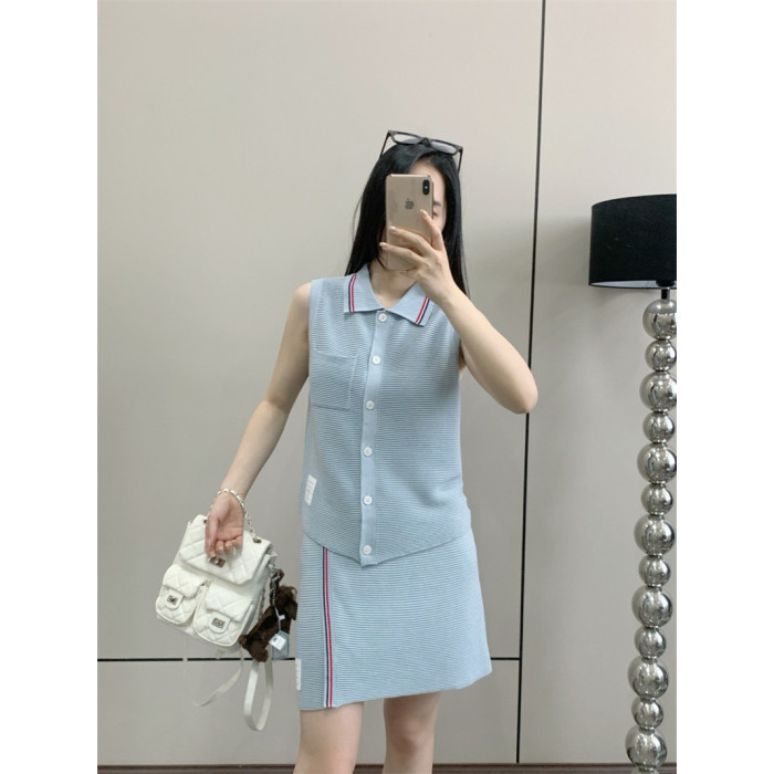 tb學院風百搭減齡休閒針織羊毛減齡小衆高版本橫波斜開短裙女春夏