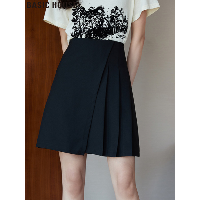 Basic House/百家好不規則黑色西裝百褶短裙女裝2025巨好看的裙子