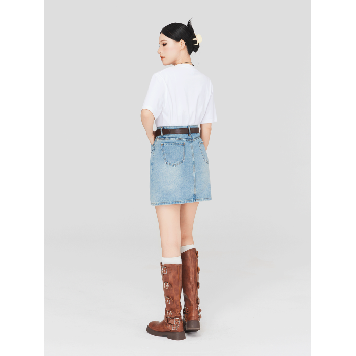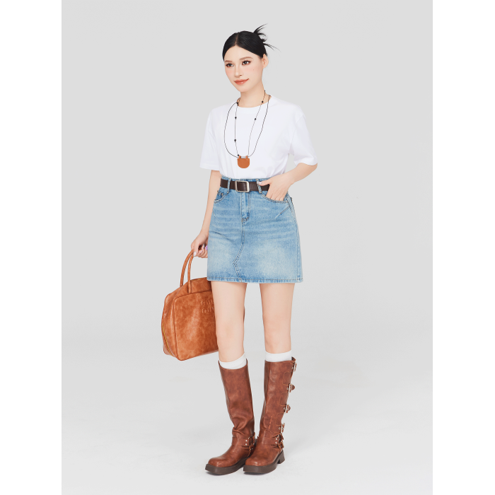 牛仔短裙女夏2025新款大碼胖mm高腰顯瘦遮肚包臀a字氣質系半身裙