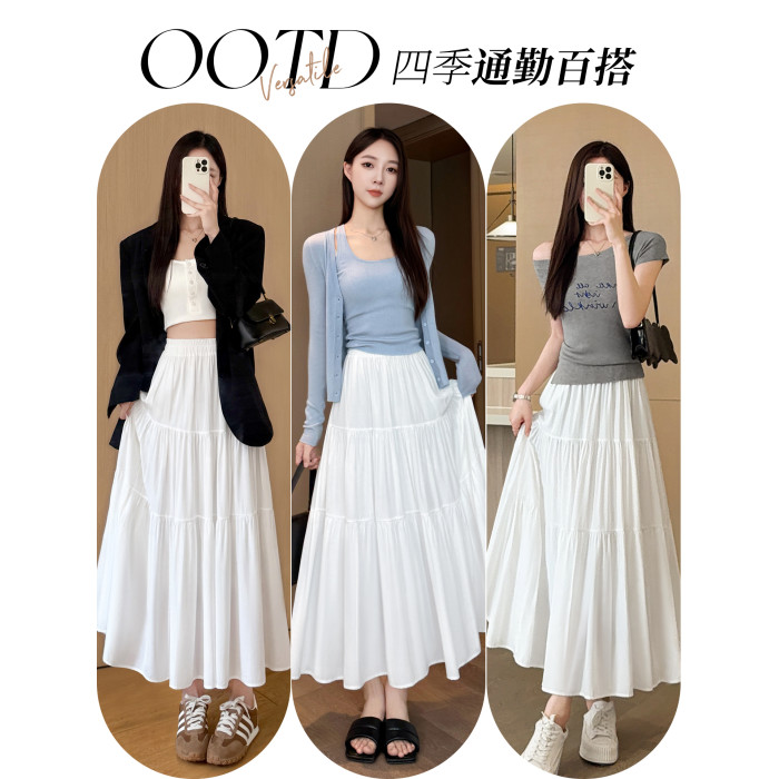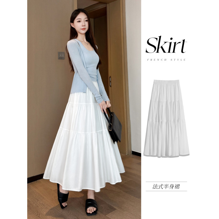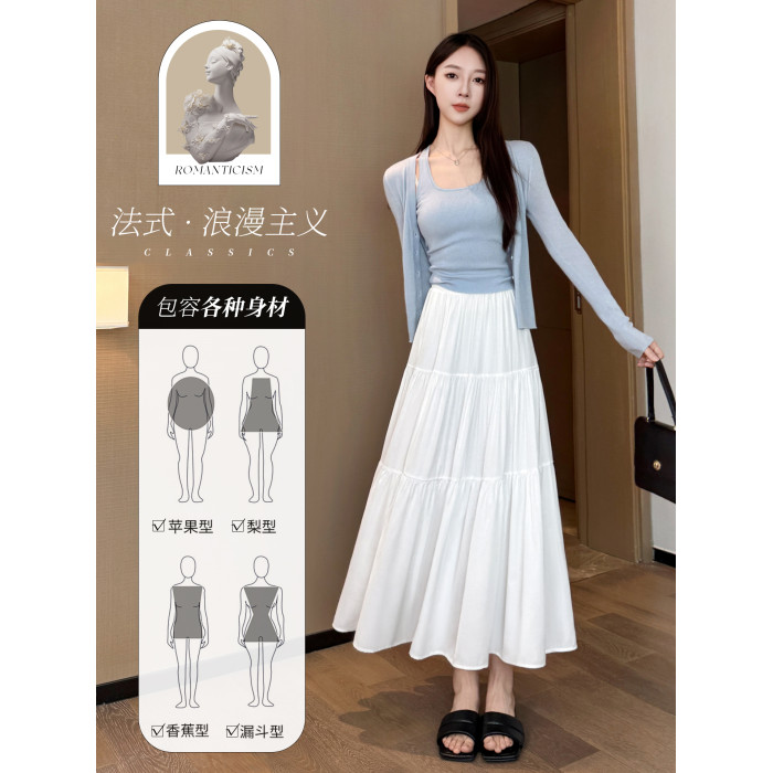 超火白色半身裙女2025新款夏季薄款a字垂感蓬蓬繖裙小個子蛋糕裙