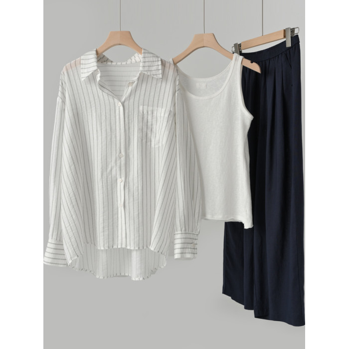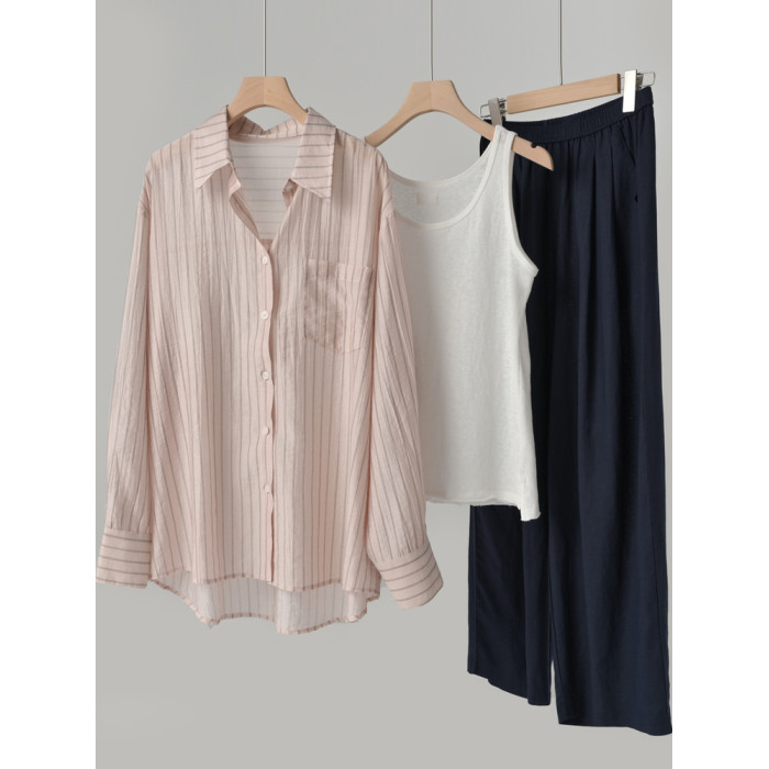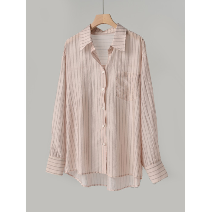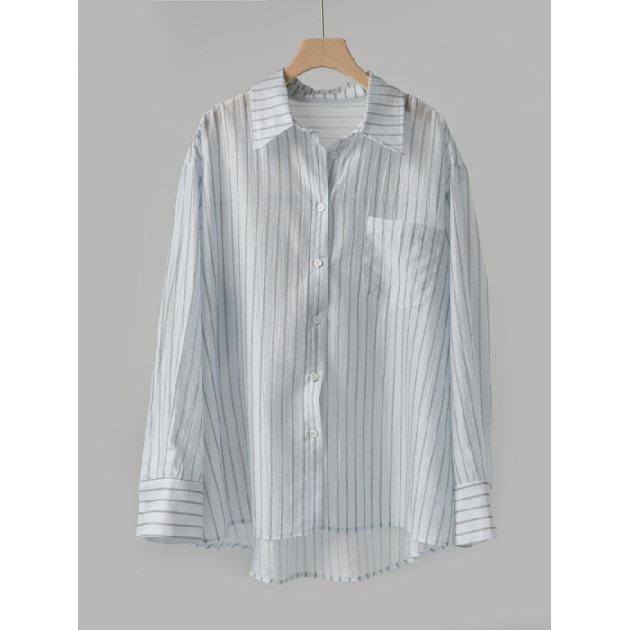 80g 薄款 萊賽爾 女士條紋長袖襯衫 輕薄上衣外套 夏款 女裝