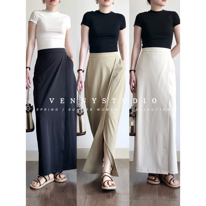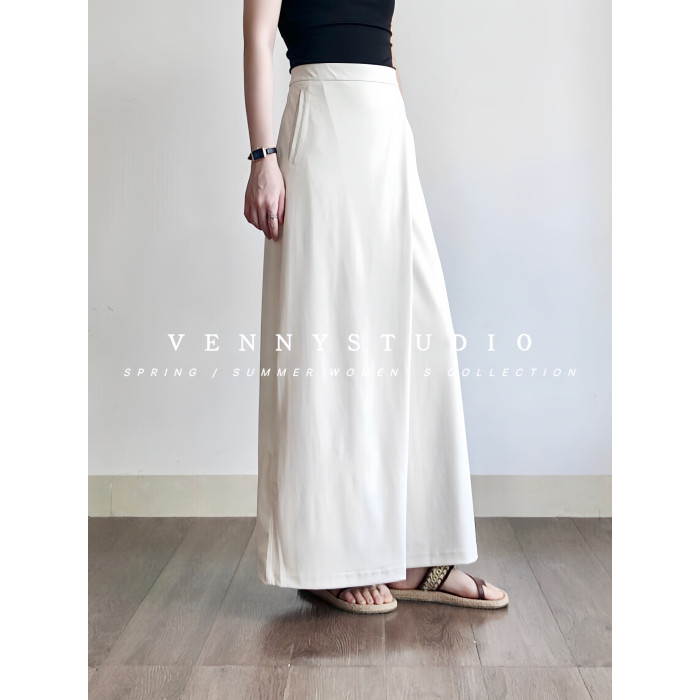 法式赫本風黑色高腰a字半身裙2025夏季新款白色簡約通勤中長款裙