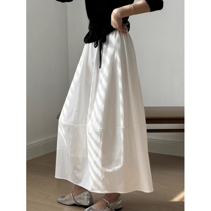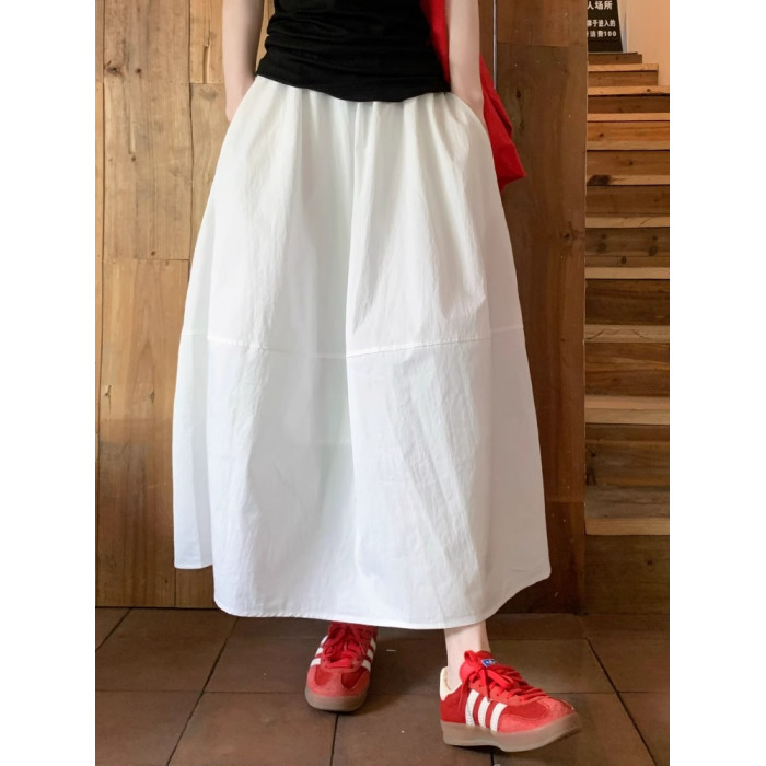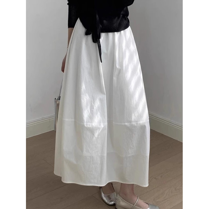 白色半身裙女夏薄款2025新款高腰抗皺速乾繖裙中長款A字大擺裙子
