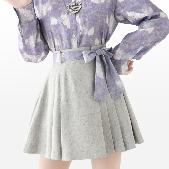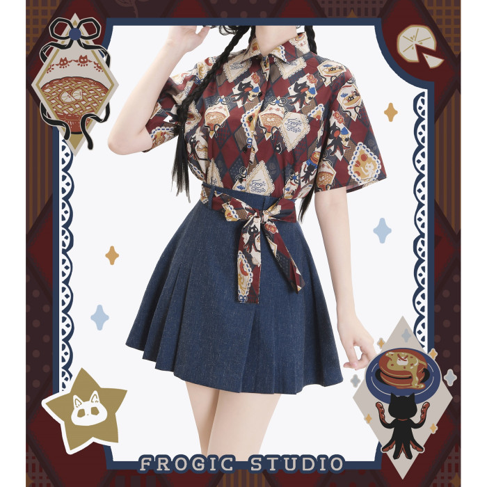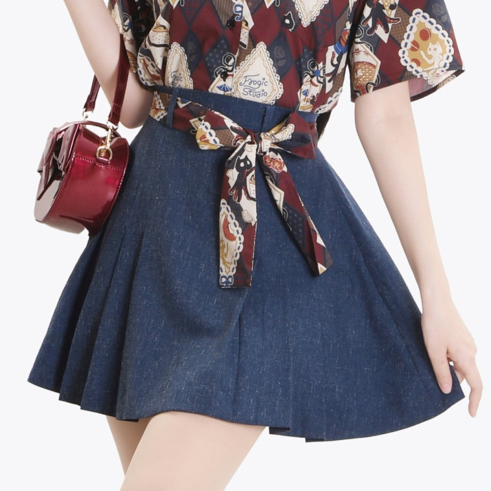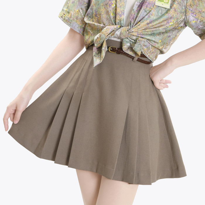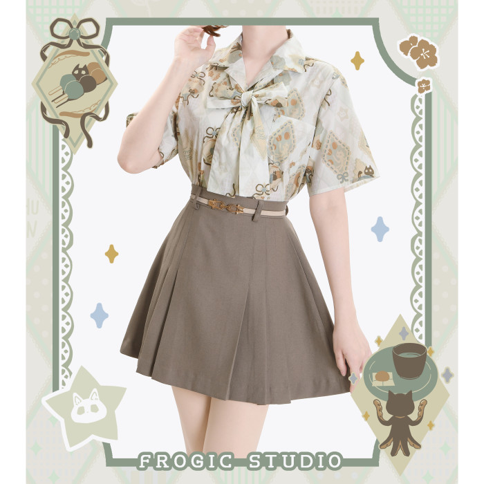 壓褶半裙·貓蘇魯下午茶·亞麻混紡復古A字西裝短裙·Frogic原創