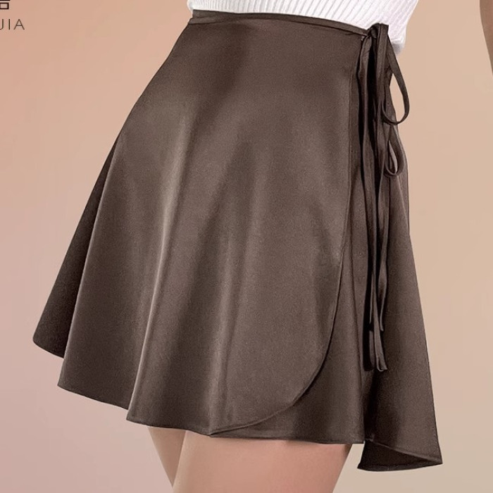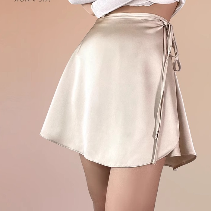 重磅真絲一片式裹裙女夏季100%桑蠶絲緞面鯊魚褲遮跨高腰綁帶短裙