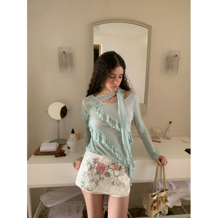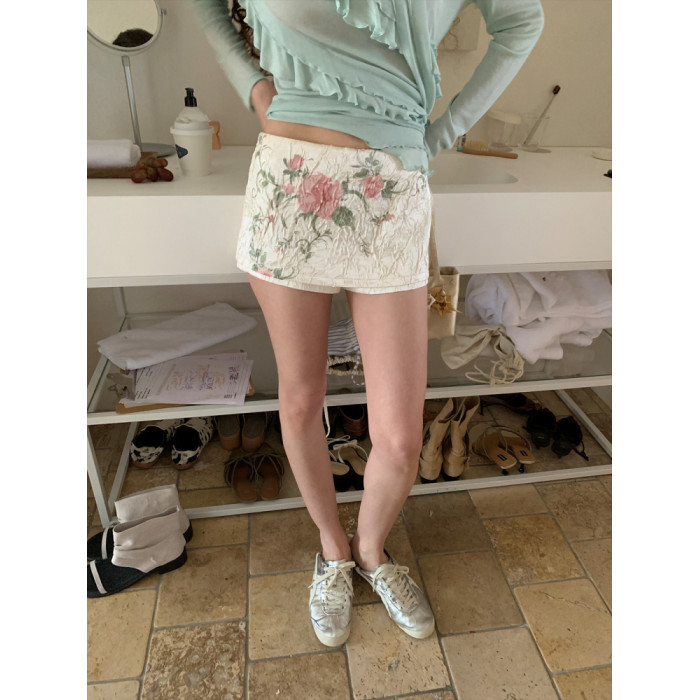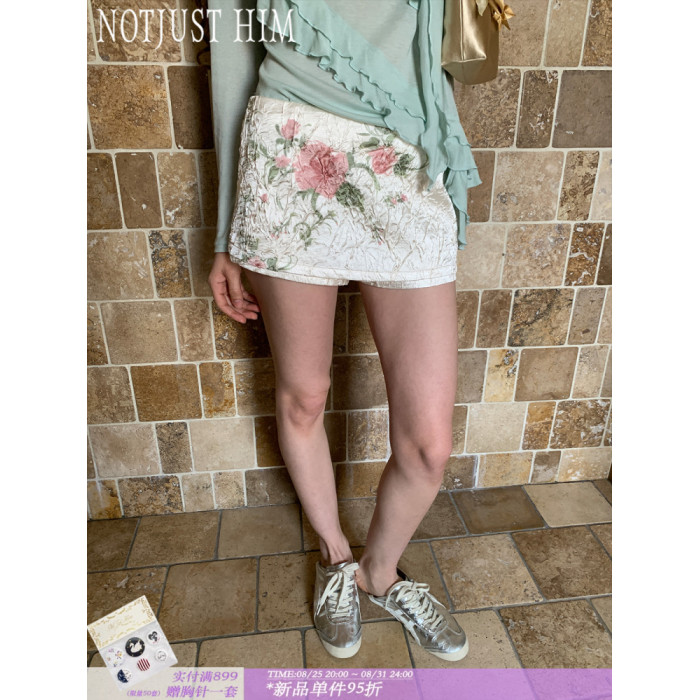 花筏NOTJUSTHIM綢緞皺原創印花低腰短裙褲