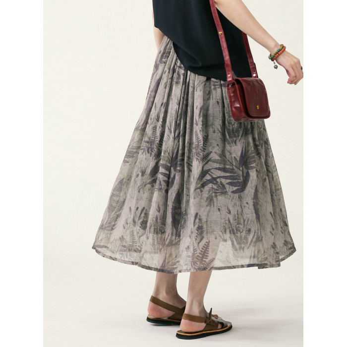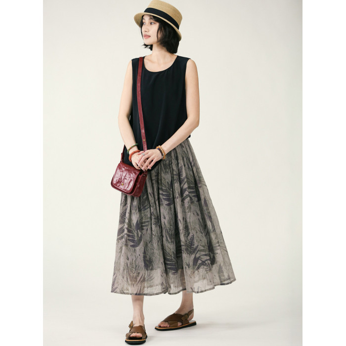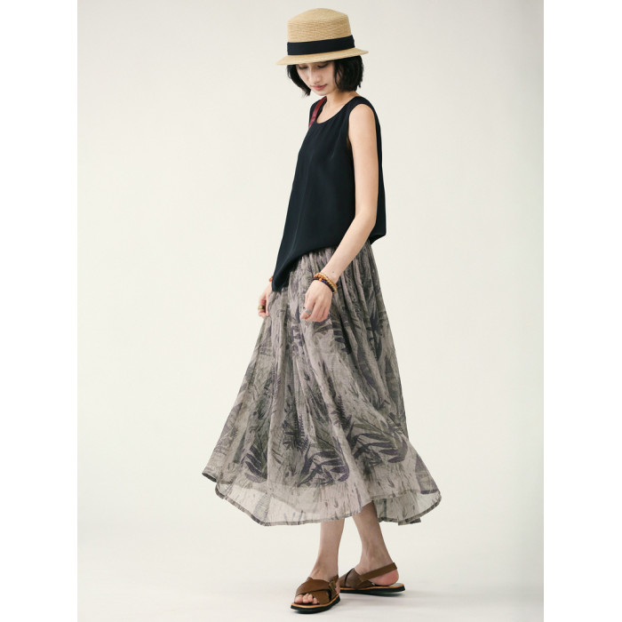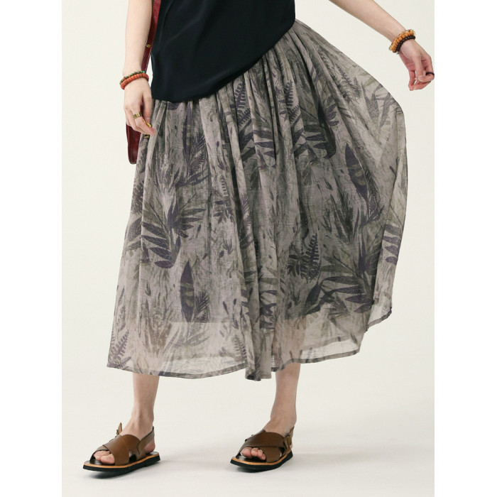 獨上織造 疏影暗香 詩意印花紋理感a字半身裙女松緊腰中長款夏季