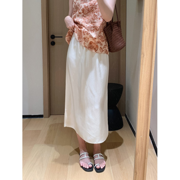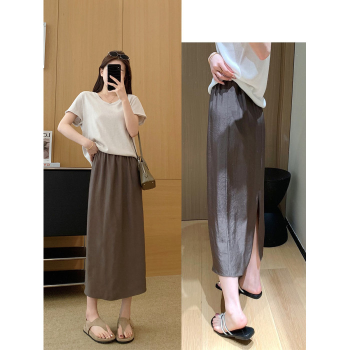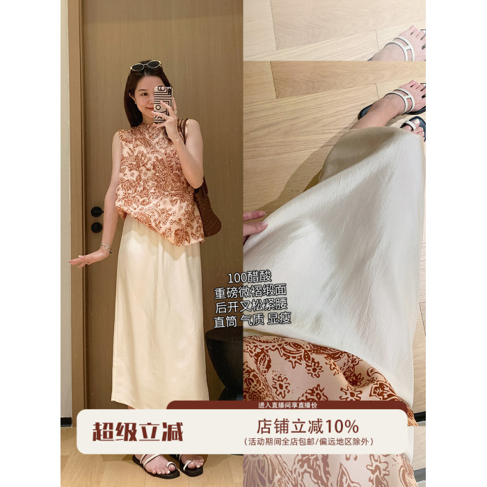 大叮自製100醋酸半裙!醋酸緞面後開叉直筒裙2025夏季氣質半身裙