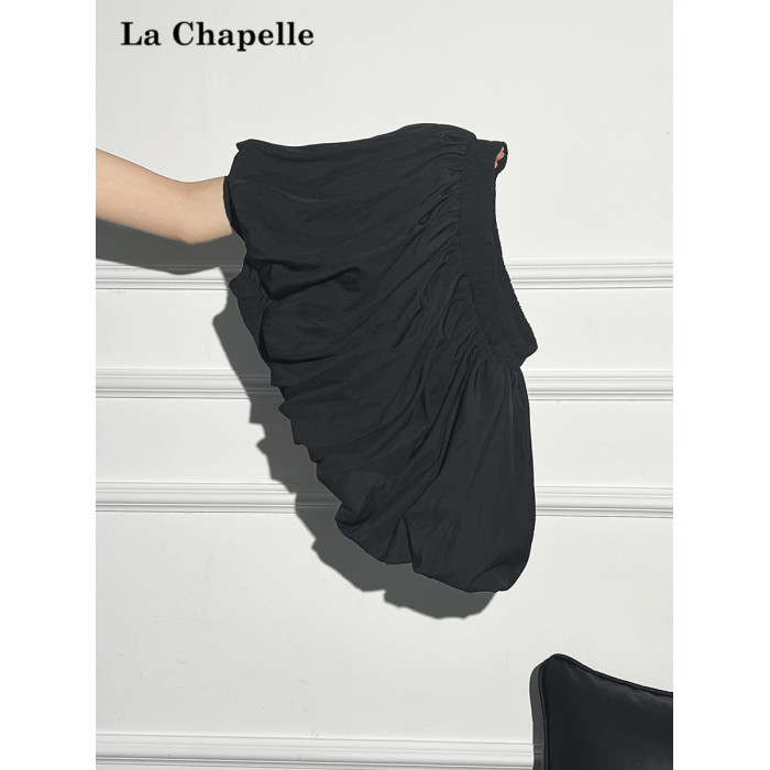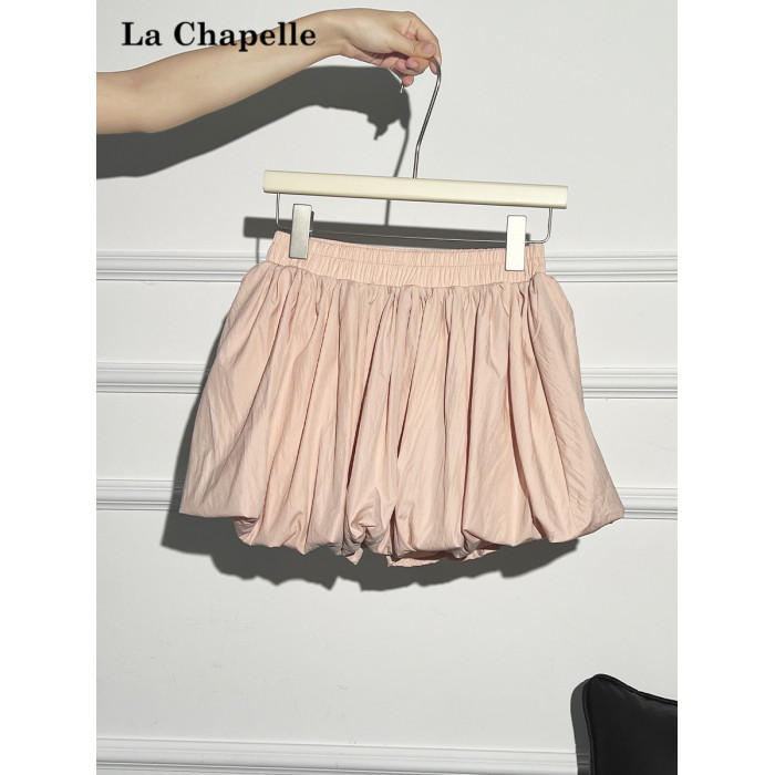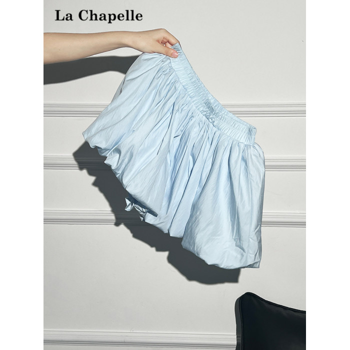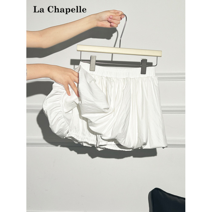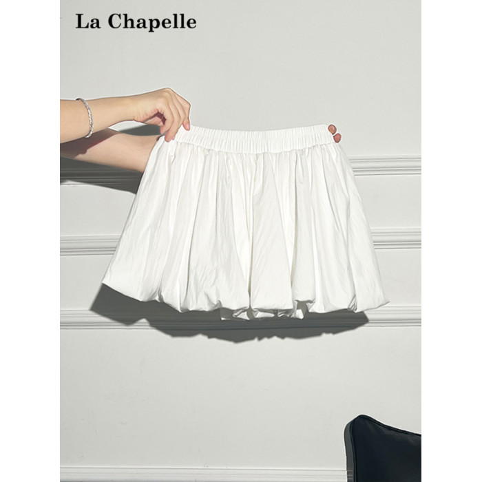 拉夏貝爾白色仙女蓬蓬花苞短裙女夏季溫柔高腰a字甜美松緊腰短裙