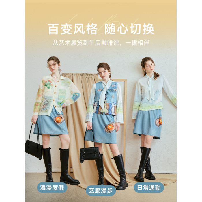 兩三事高腰a字短裙女2025夏季新款小個子設計感顯瘦裙褲星河行川
