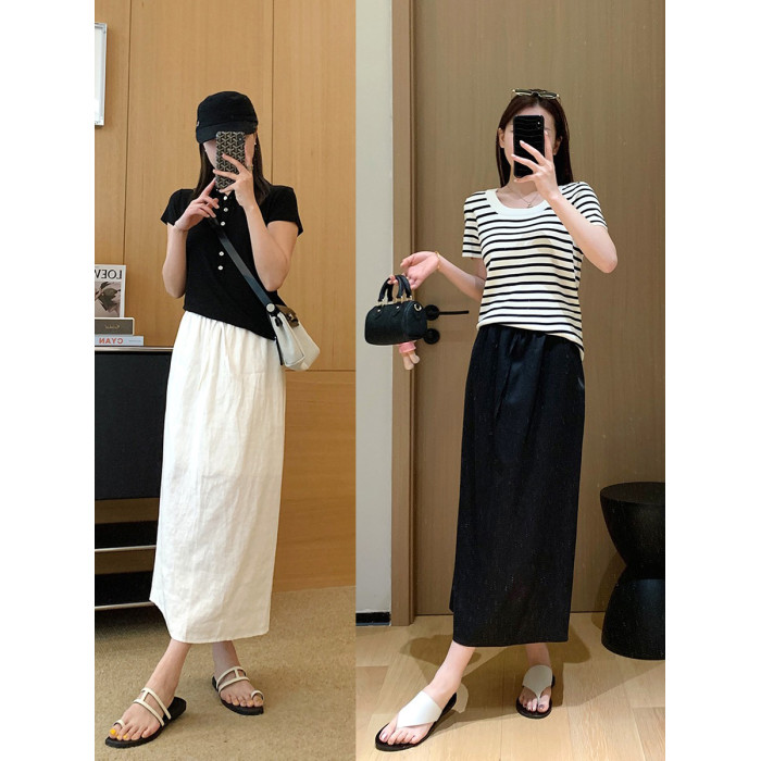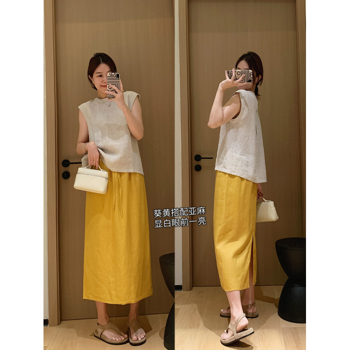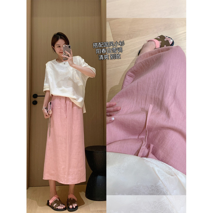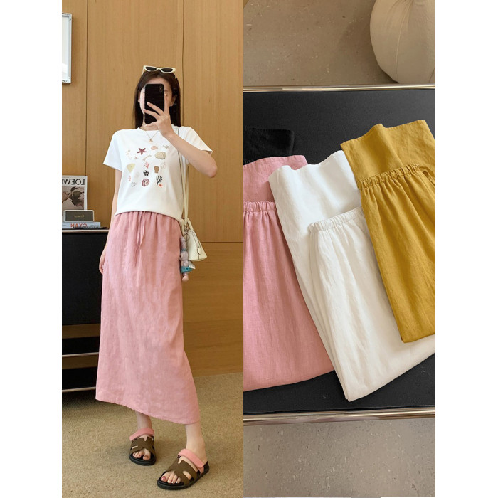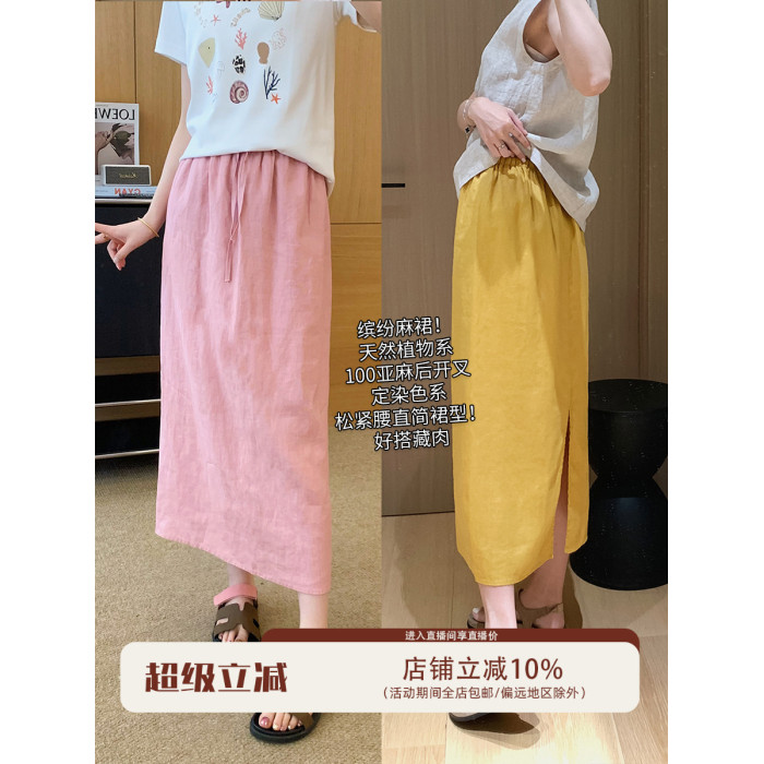 大叮自製繽紛麻裙!100亞麻後開叉寬松直筒裙2025夏季寬松半身裙
