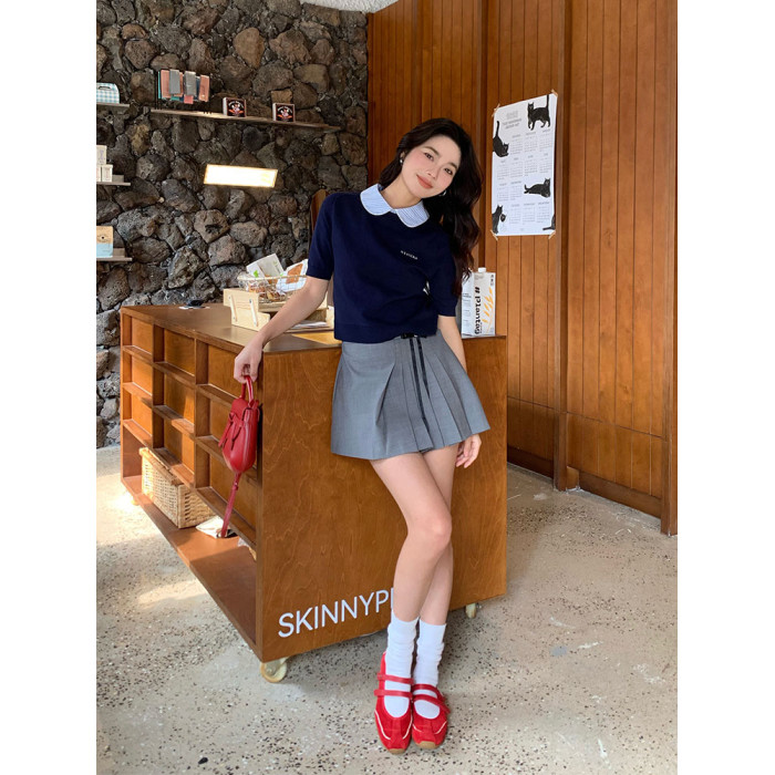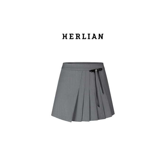 HERLIAN女士百褶短裙蝴蝶結裝飾不規則半裙