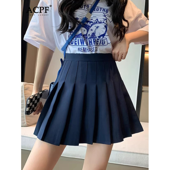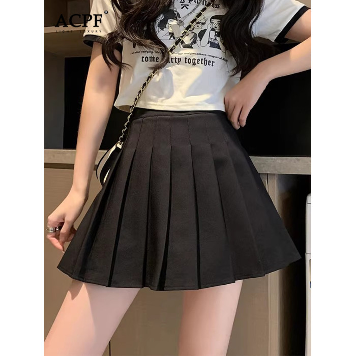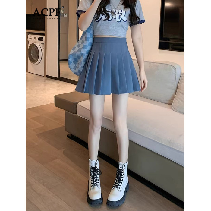 純色半身裙女夏新款休閒舒適簡約百搭高腰墜感a字短裙薄款百褶裙