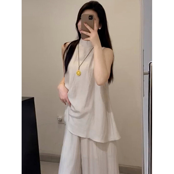 新中式國風無袖背心襯衫女夏季2025新款小個子清冷感禪意套裝裙褲