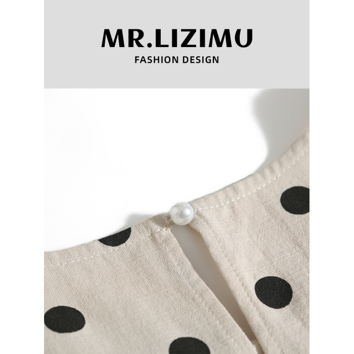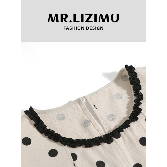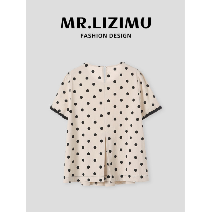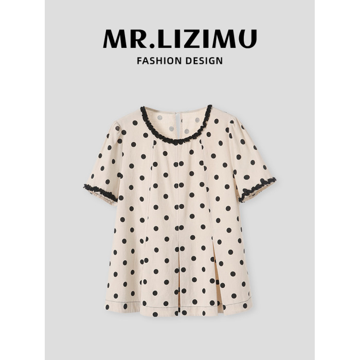 李子木先生法式波點圓領短袖襯衫女2025夏季新款寬松百搭薄款上衣