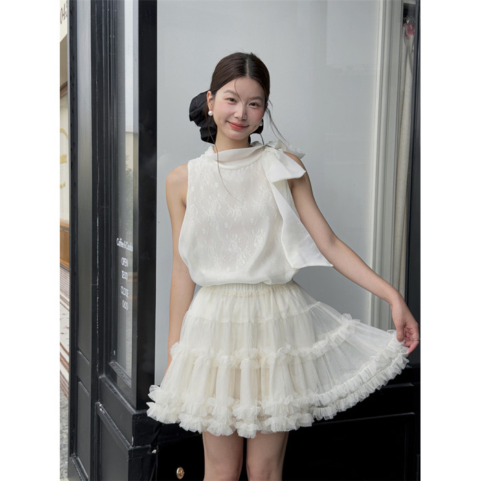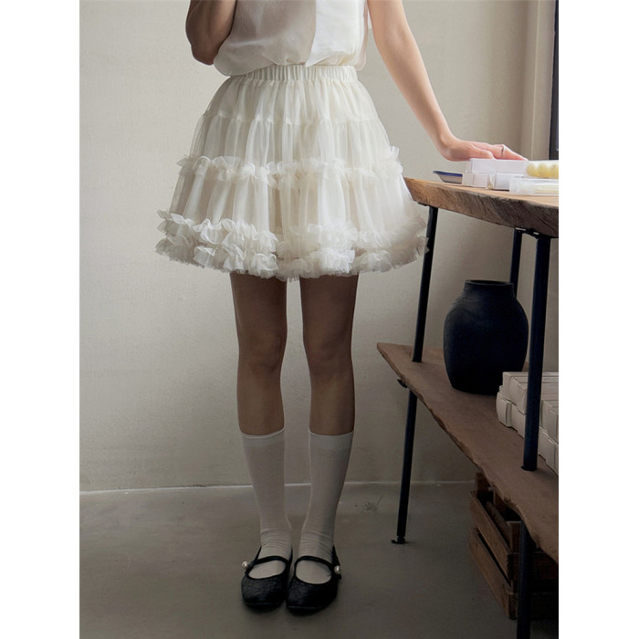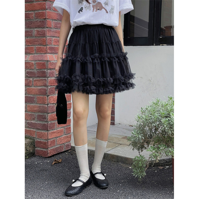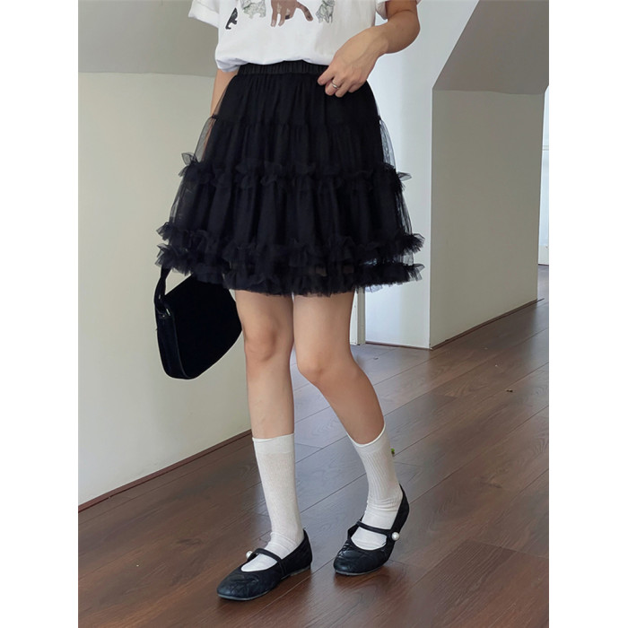 是大魚餅呀 網紗松緊高腰顯瘦A字蓬蓬裙女2025夏韓版百搭氣質短裙