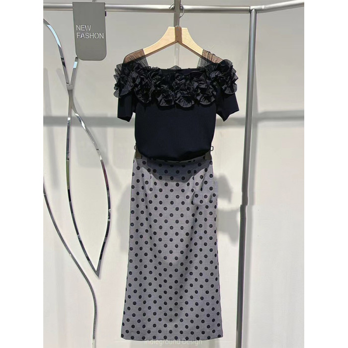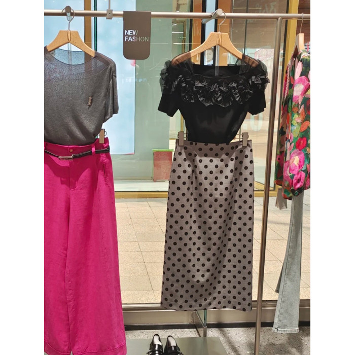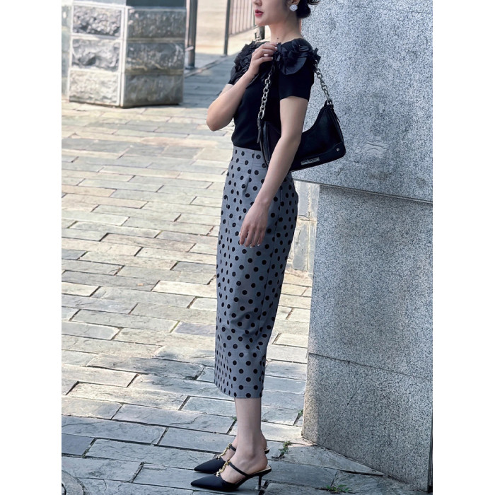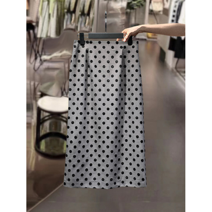 灰色波點圓點半身裙女2025夏新款時尚高腰顯瘦A字裙中長款裙子