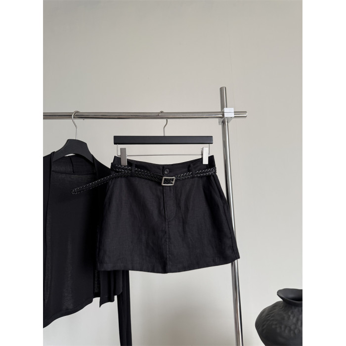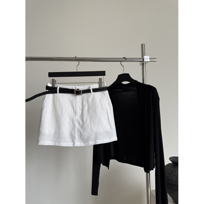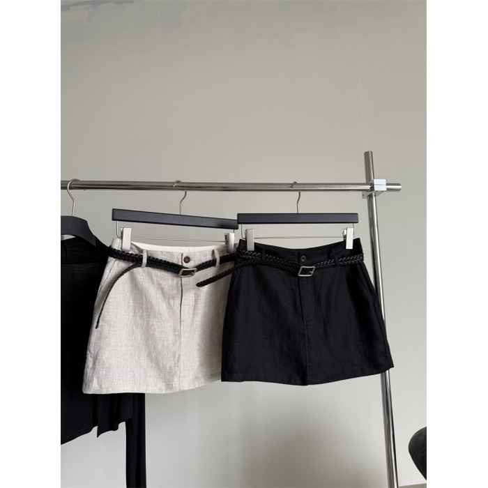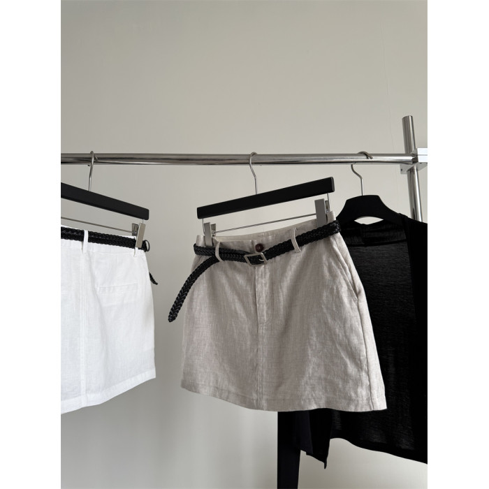 JAYT 法式老錢風極簡精緻亞麻短褲裙 造型感高智直筒顯瘦麻料短裙