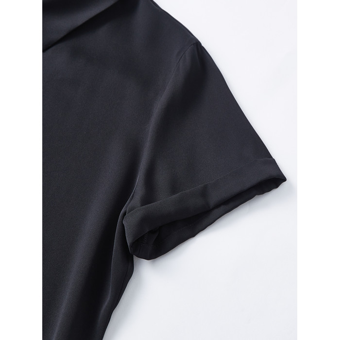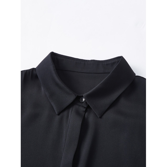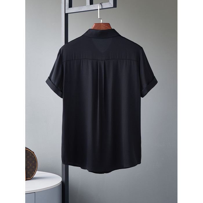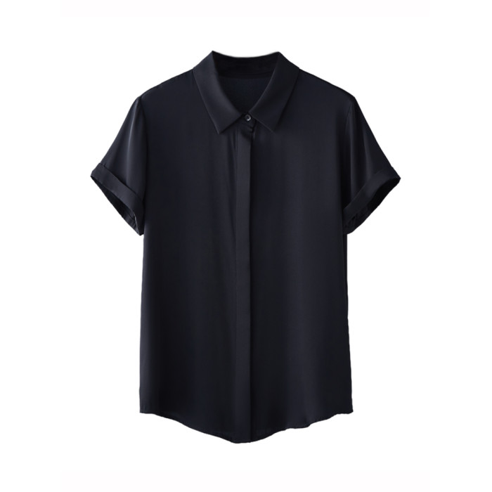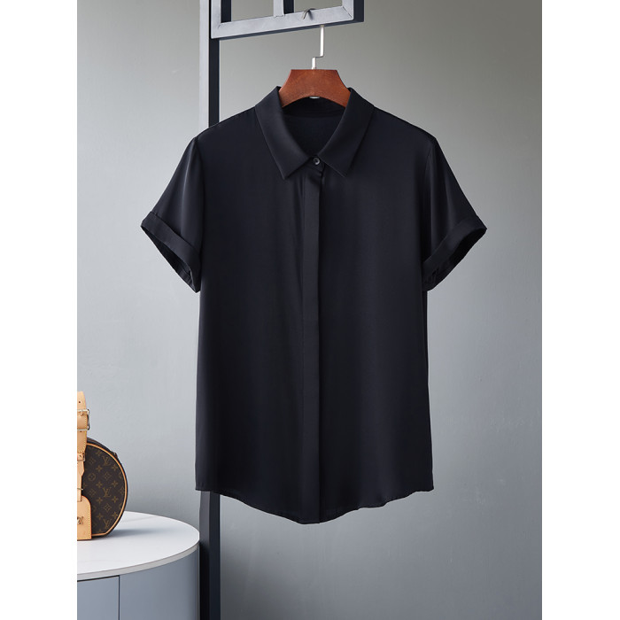 杭州黑色真絲襯衫女短袖洋氣媽媽2025夏裝新款純色百搭桑蠶絲上衣
