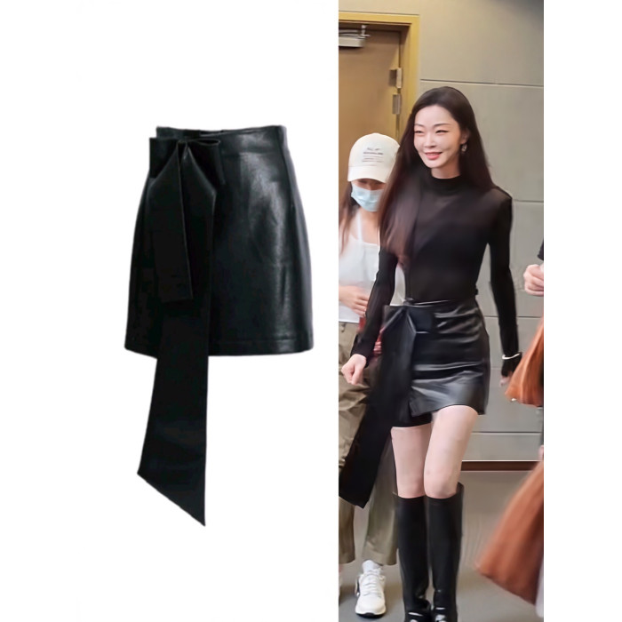 宋軼同款黑色短袖t恤套裝女夏季白色蕾絲拼接高腰包臀波點半身裙