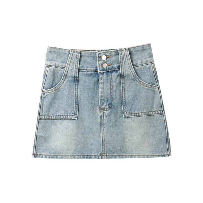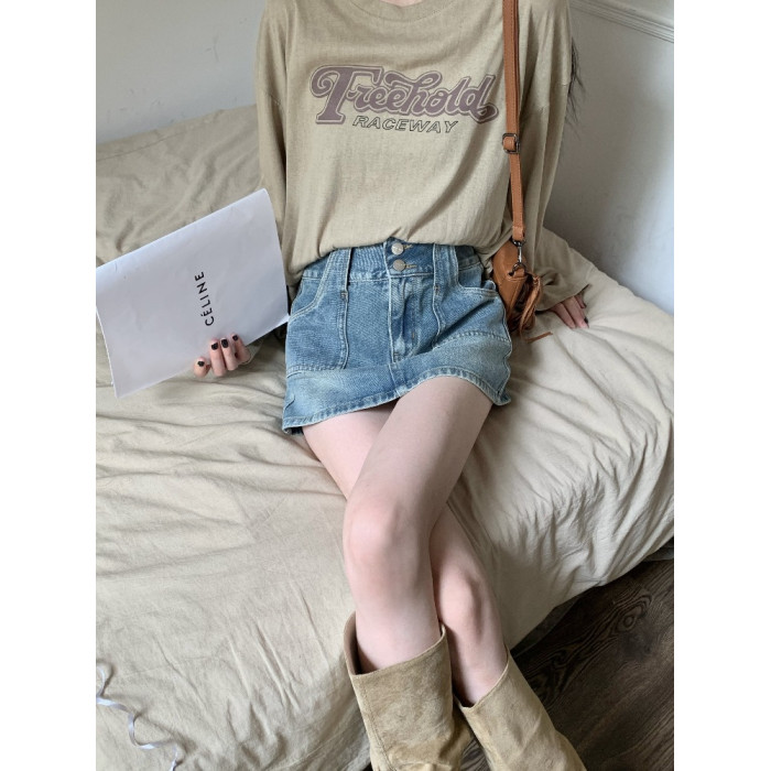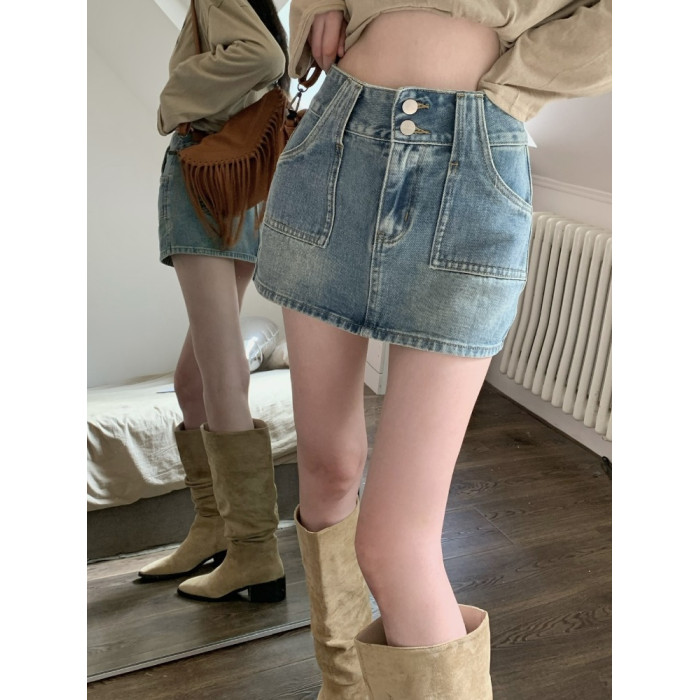妍度復古牛仔短裙女新款小個子百搭顯瘦辣辣半裙高腰包臀a字短裙