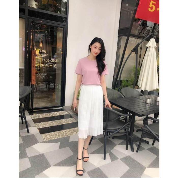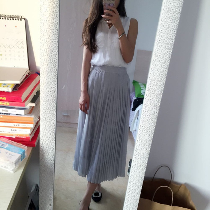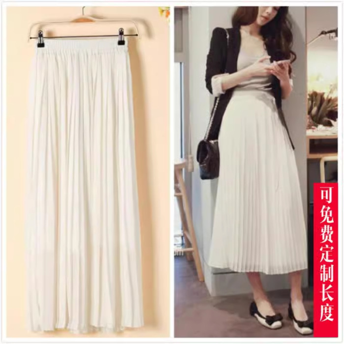 2025夏季新女a字百搭顯瘦純色雪紡百褶裙高腰半身裙中長裙仙女裙
