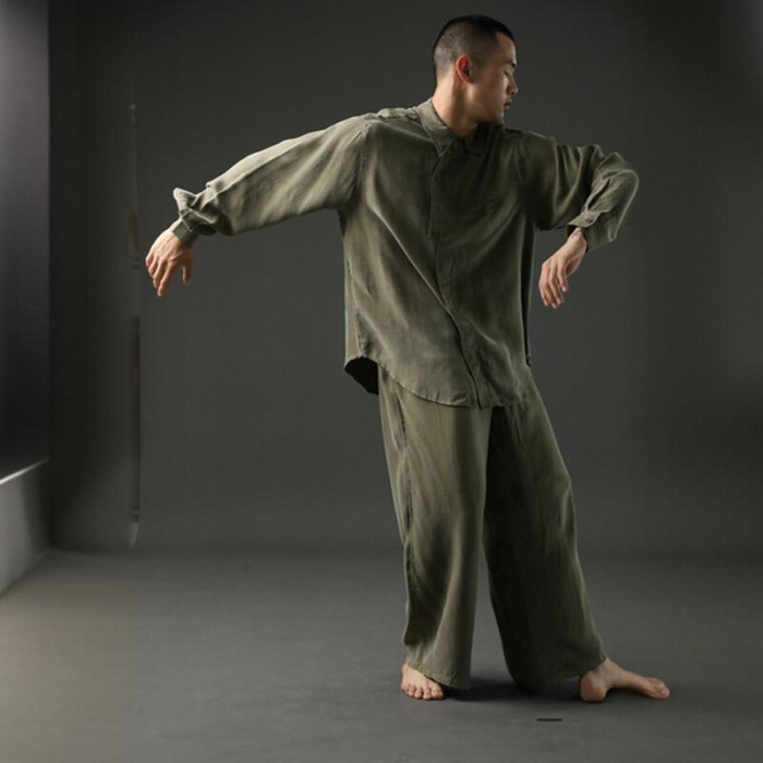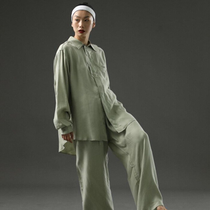 謝訢同款原創DANCE系列Soft銅氨絲涼感垂墜襯衫褲子竹青沼澤椰棕