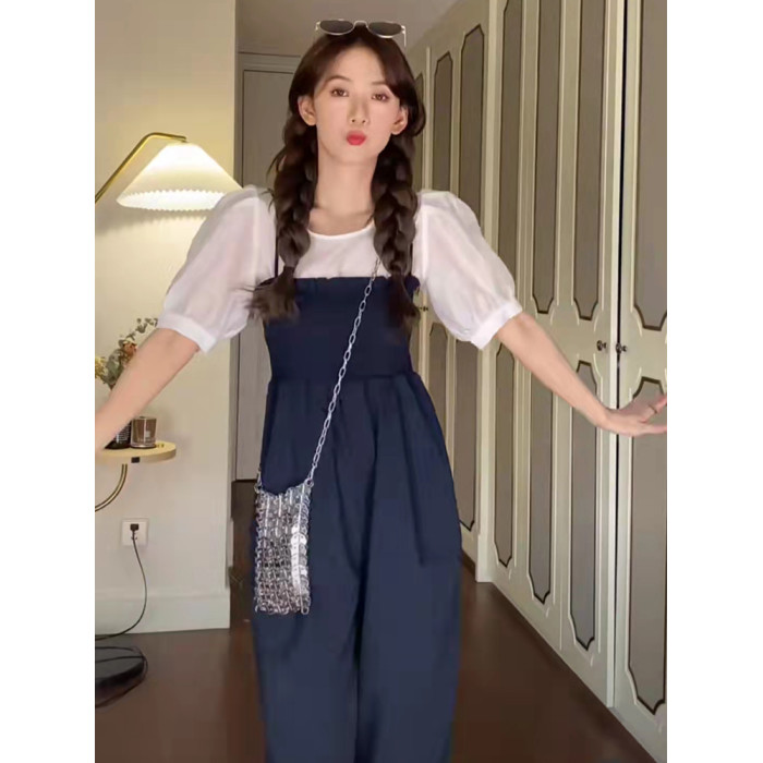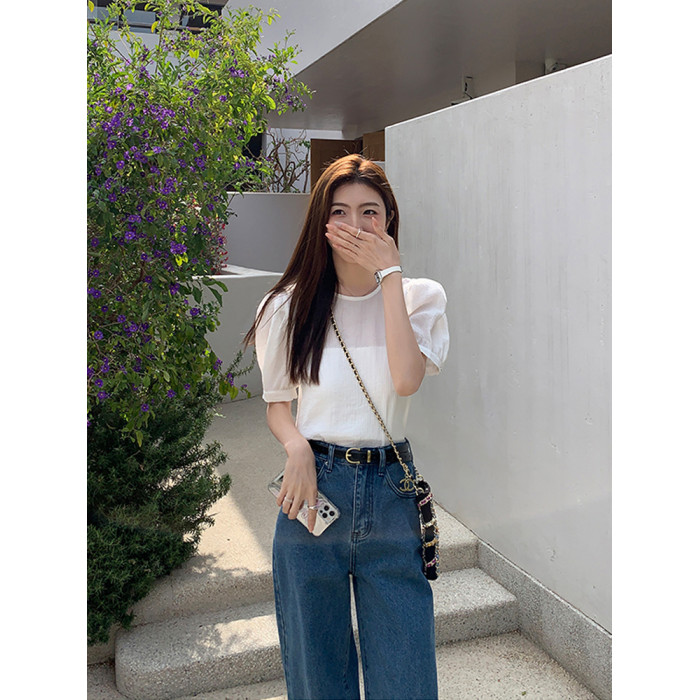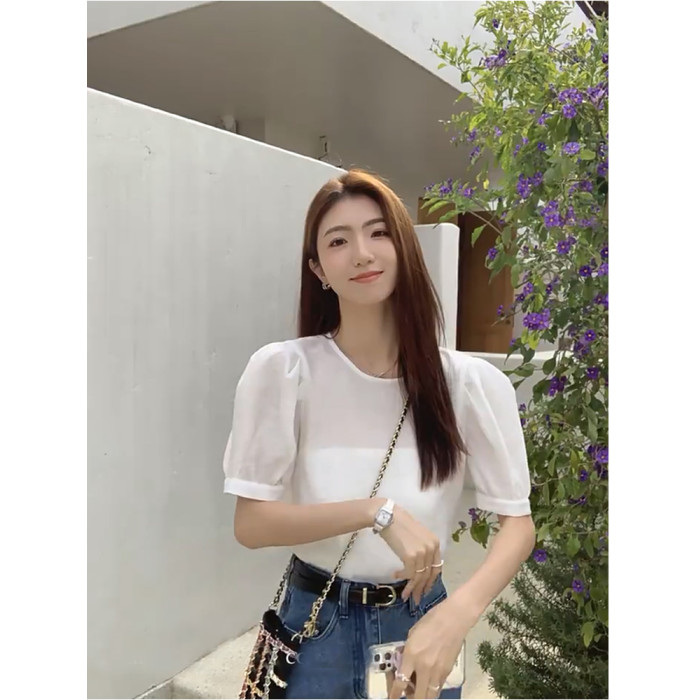 泡泡袖內搭天絲襯衫女夏季配吊帶裙短袖雪紡上衣薄紗t恤透明打底