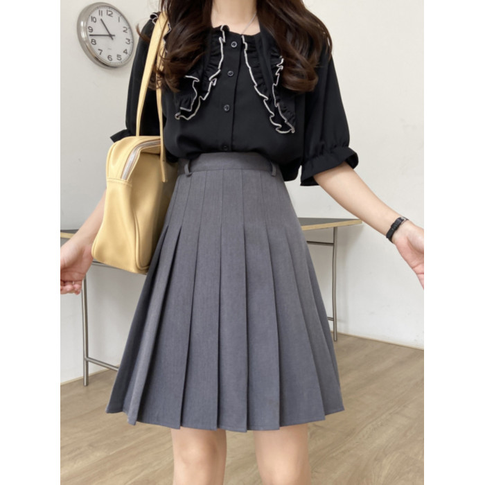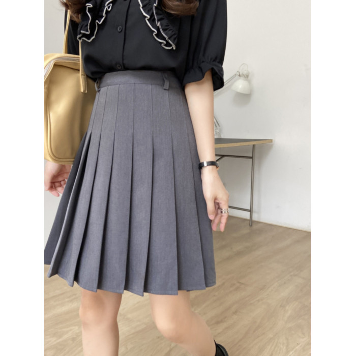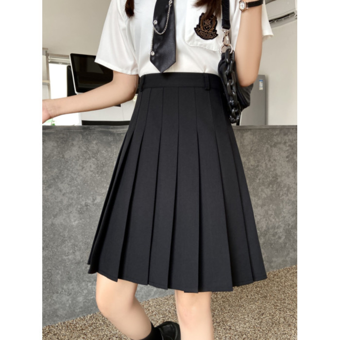 大碼胖mm加長黑色百褶裙女高腰顯瘦學院風防走光tb風a字半身短裙