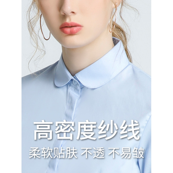 藍色襯衫女短袖職業圓領娃娃領白襯衣公務員工作服面試正裝竹纖維