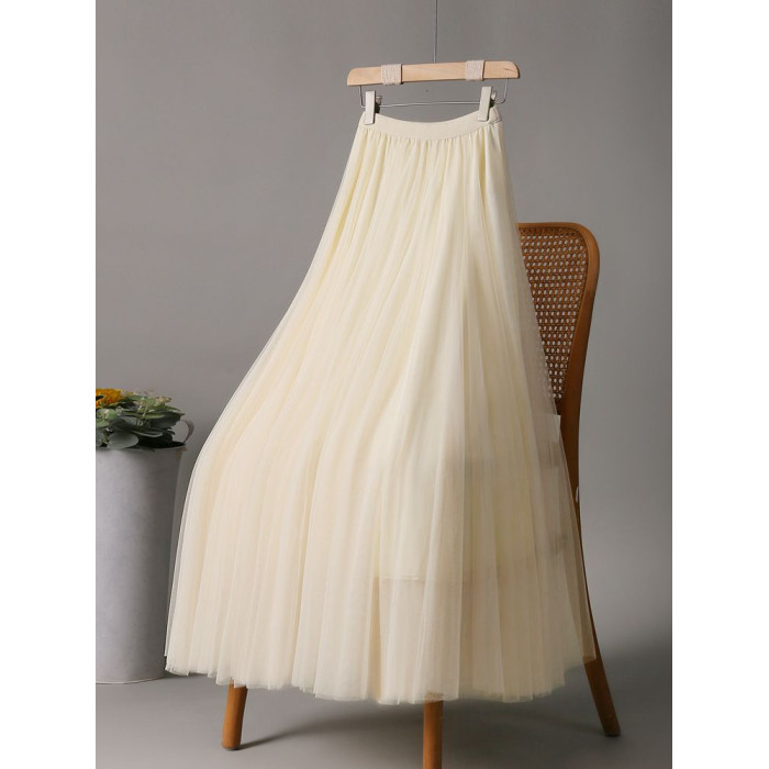 高級網紗半身裙女新款白色紗裙720度大擺舞蹈裙高腰沙裙子a字長裙