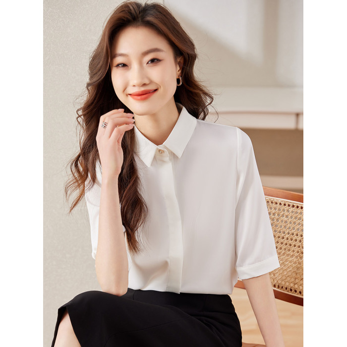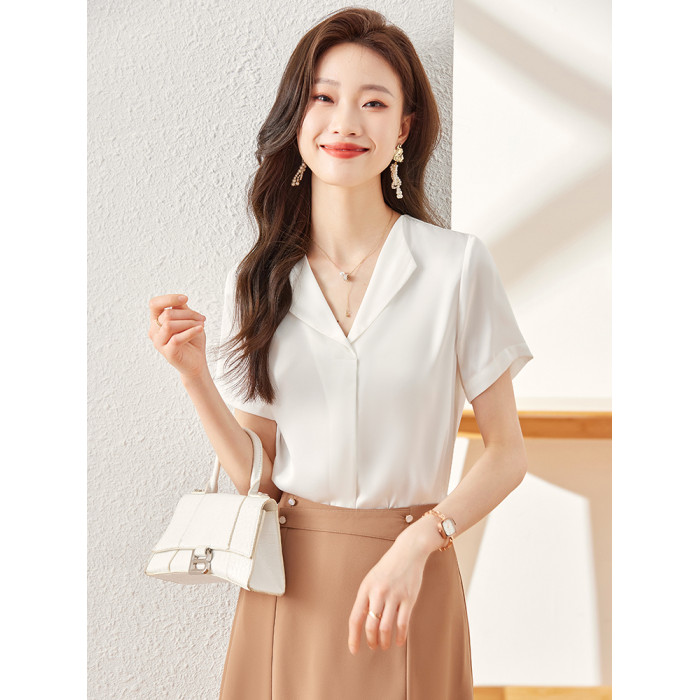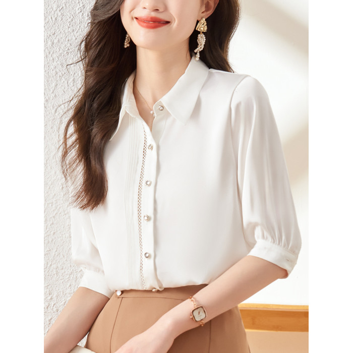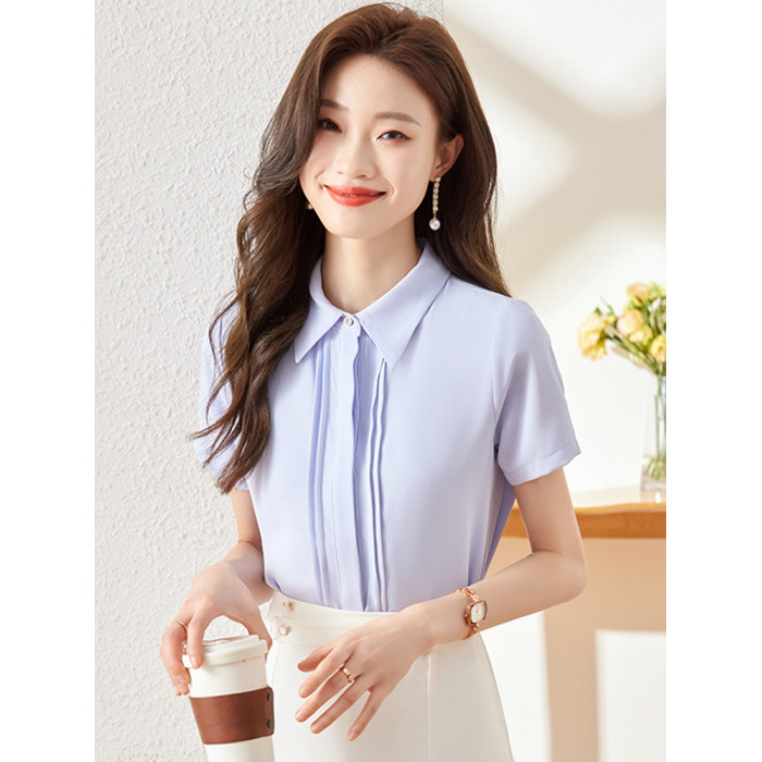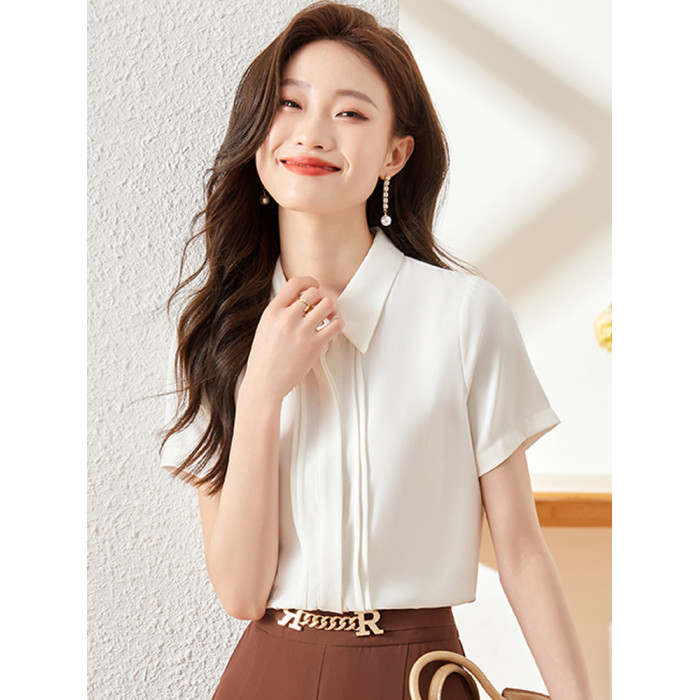 雪紡襯衫女短袖寬松氣質夏季薄款垂感上衣高級設計感小衆白色襯衣
