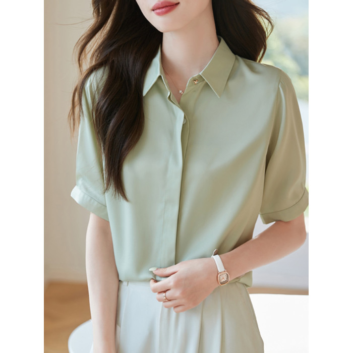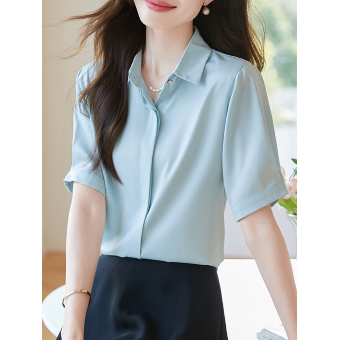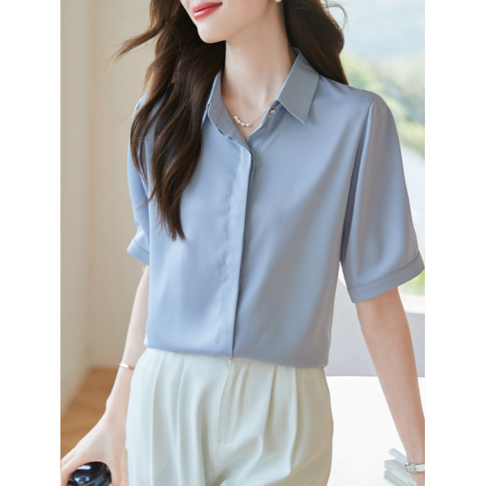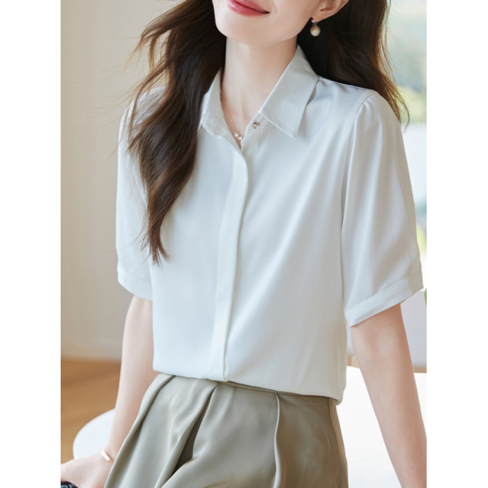 白領哥弟新品質女裝2025年夏季款簡約桑蠶絲雪紡氣質顯瘦短袖襯衫