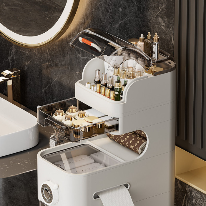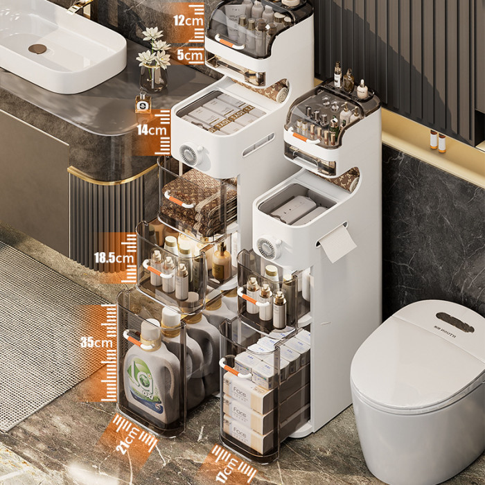 夾縫櫃家用廚房抽屜式儲物櫃衛生間帶燈多功能窄縫防塵防潮收納櫃