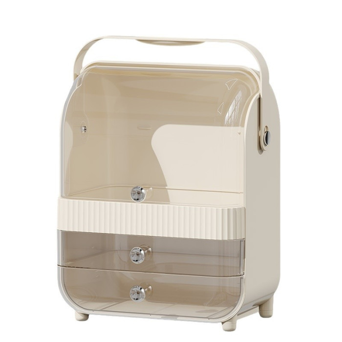 化妝箱大容量化妝品收納盒多功能桌面收納盒帶蓋帶提手防塵收納盒