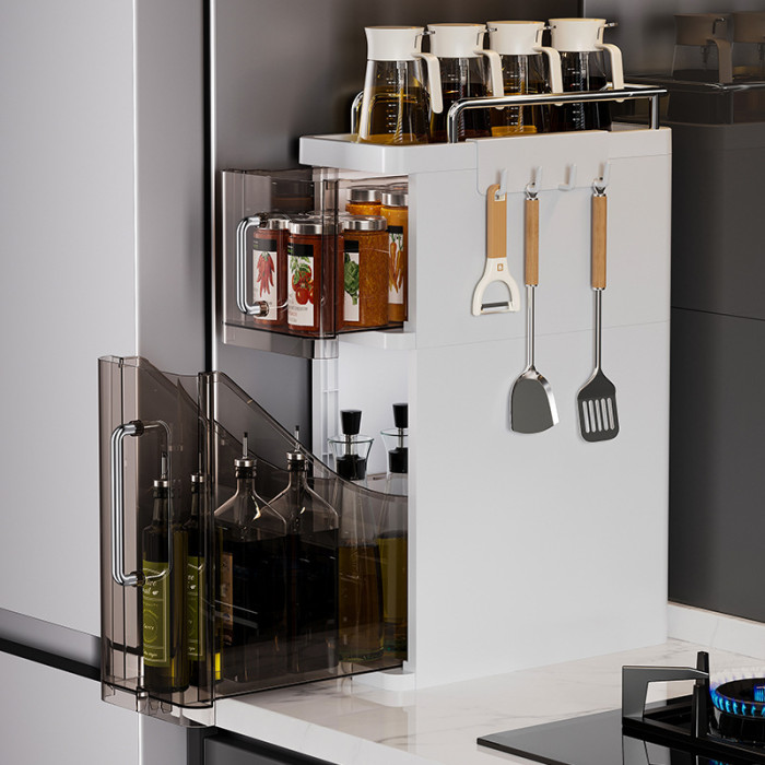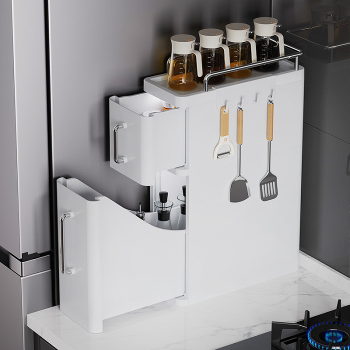 廚房收納櫃調味品廚具置物架桌面抽拉式帶掛鉤帶滑輪一體式夾縫櫃