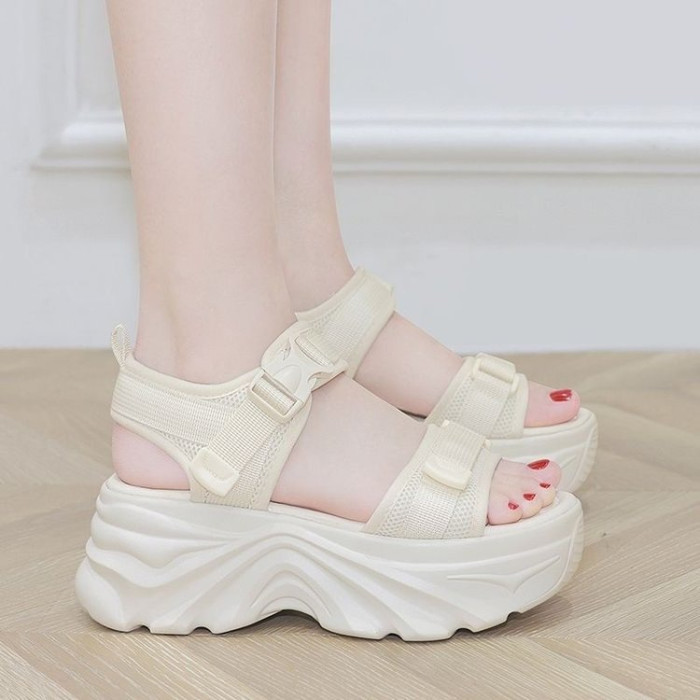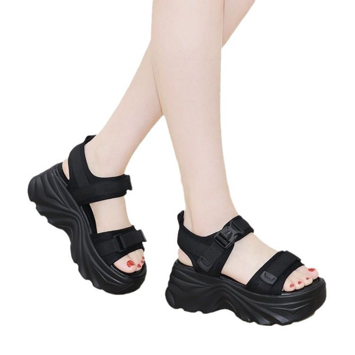 網紅老爹涼鞋女外穿2025夏季新款百搭軟底防滑厚底松糕運動沙灘鞋