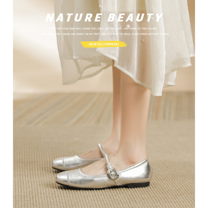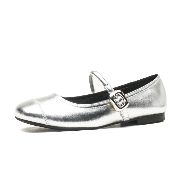方頭淺口銀色小皮鞋2025春季新款平底內增高軟底瑪麗珍單鞋女鞋
