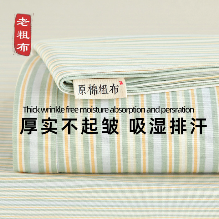 A類純棉100全棉老粗布床單單件加厚夏季新款被單人炕單涼蓆三件套