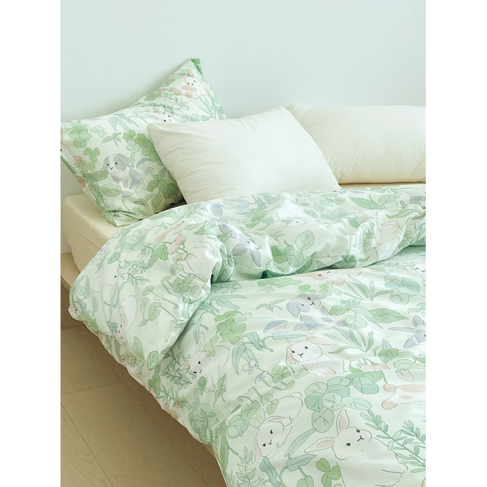 兔兔與森林 設計師手繪小清新全棉1.5米被套可愛小兔子被芯罩單件