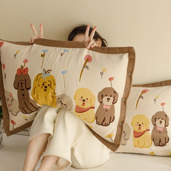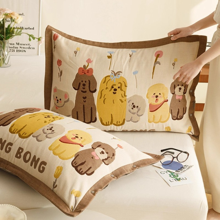 CelotKever純棉四層紗布枕套一對裝成人枕頭套家用加厚全棉防頭油